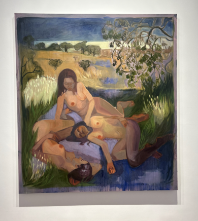 Vanessa Raw’s solo exhibition ‘On Earth We Weren’t Meant to Stay’at Carl Freedman is a sumptuous celebration of sapphic desire, and a welcome reinterpretation of the male gaze that puts women in the frame from a woman’s perspective. Echoes of Picasso’s ‘Demoiselles d’Avignon’ are combined with expressionist animal motifs evoking Der Blaue Reiter, and given a contemporary twist by Raw.