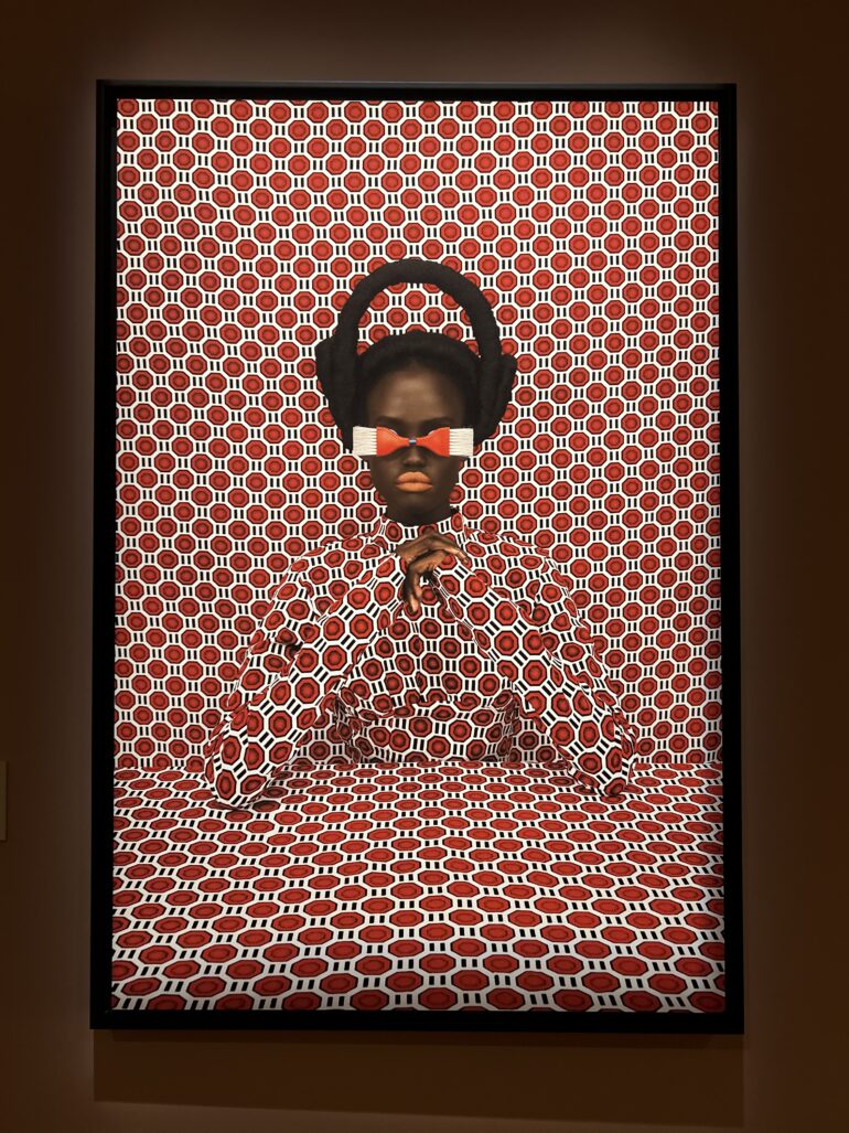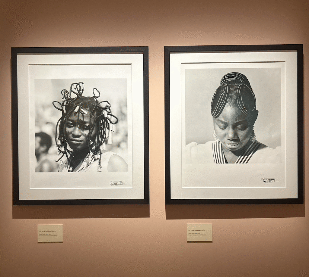 Nigerian photographer J.D. ’Okhai Ojeikere’s Hairstyles series celebrates women’s coiffures as living sculpture, while Kenyan artist Thandiwe Muriu’s vibrant, patterned portraits collapse subject and background in kaleidoscopic unity.