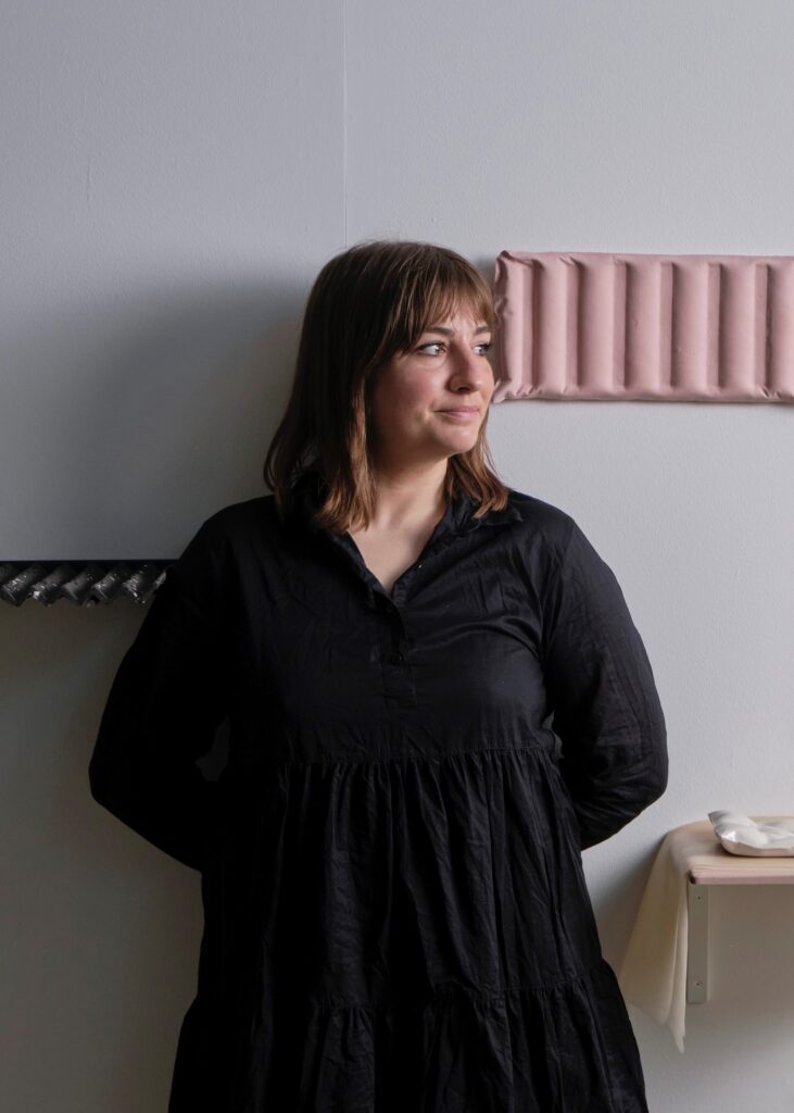 Isabel Fletcher lives and works in London. She completed an MA in Textiles (Mixed Media) at the Royal College of Art in 2023, where she was taught by fellow exhibitor Richard McVetis. Her work has been exhibited at the Design Museum, the Art Workers’ Guild, and Salts Mill, West Yorkshire.
