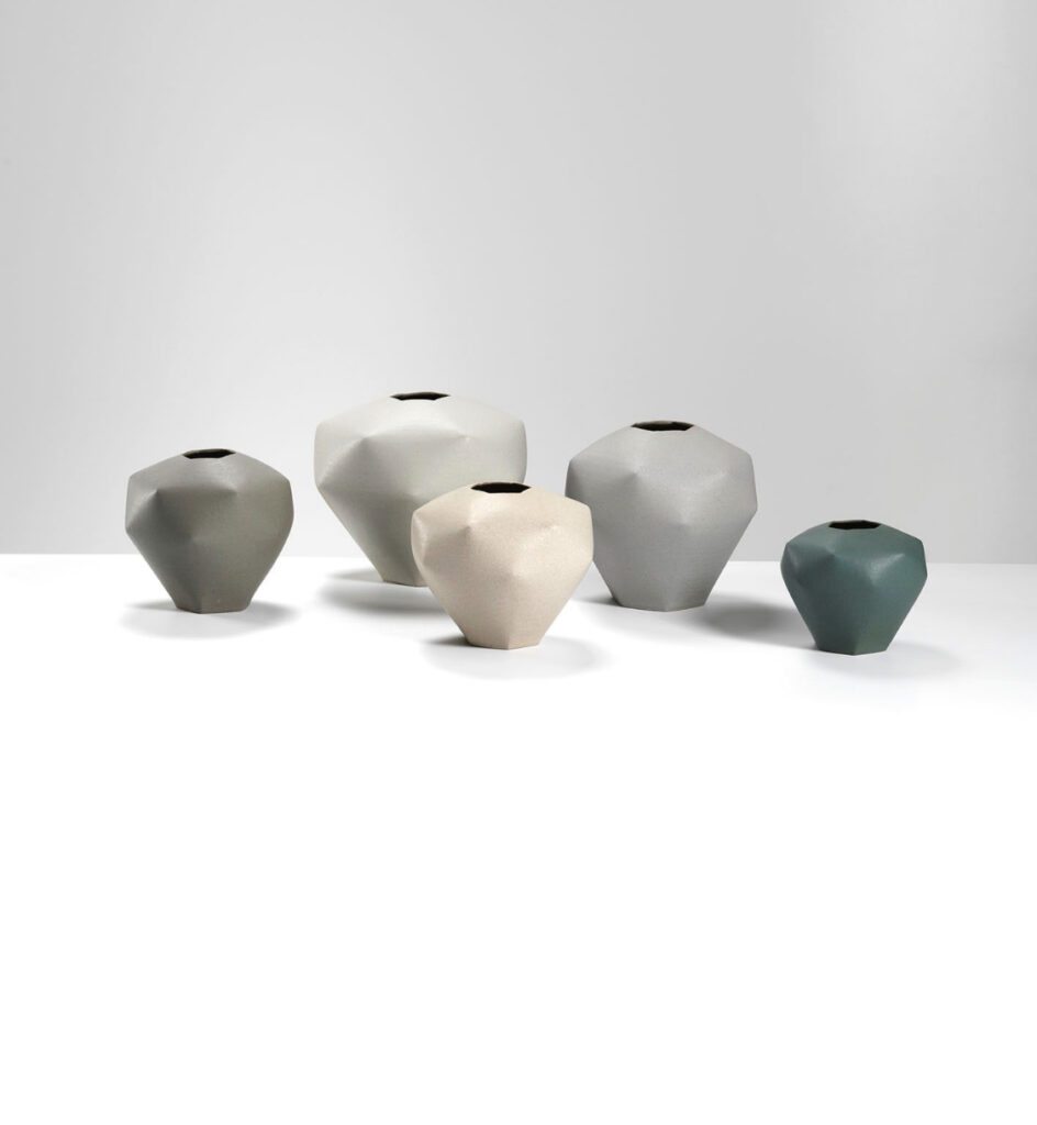 Cavaliero Finn will present a series of folded and geometric ceramic vessels by Sun Kim. Though wheel-thrown, the works are cut, reassembled, and refined into sculptural forms that recall origami and architectural planes. Subtle punctures animate the surface, while restrained colour palettes and rhythmic groupings create a sense of quiet harmony.