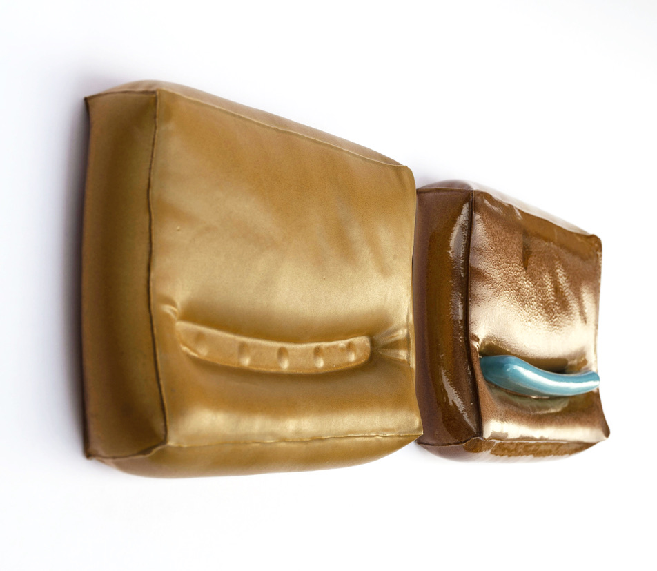 Alice Foxen’s ceramic sculptures originate from encounters with discarded domestic objects found on London’s streets. Once-soft materials—foam, fabric, padding—are translated into fired clay, preserving creases, slumps, and folds. The work holds a tension between fragility and permanence, presence and absence.