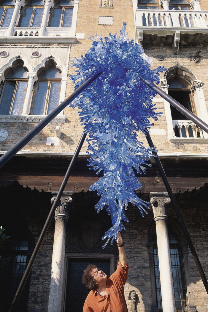Dale Chihuly with Palazzetto Stern Chandelier Venice, 1996 © 1996 Chihuly Studio. All rights reserved.