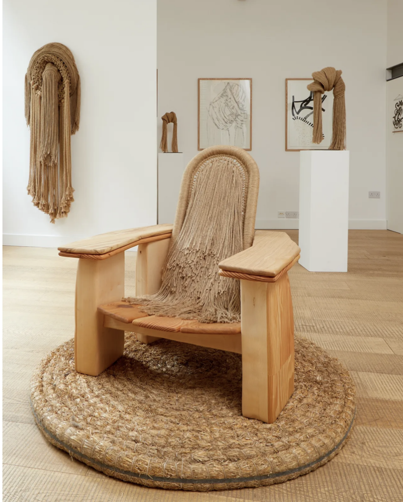 Working with crochet, macramé, weaving, and natural or repurposed materials, Kelly constructs form that oscillate between containment and release. The works open, unravel, and spill outward, holding vulnerability alongside quiet insistence. Emotional intensity is carried through material tension rather than visual excess, creating an environment that feels at once exposed and composed, intimate and assured.