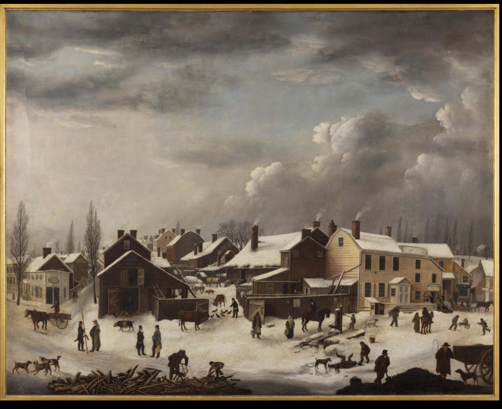 Francis Guy. Winter Scene in Brooklyn, ca. 1819–20. Oil on canvas. Brooklyn Museum, Transferred from the Brooklyn Institute of Arts and Sciences to the Brooklyn Museum, 97.13. (Photo: Brooklyn Museum)
