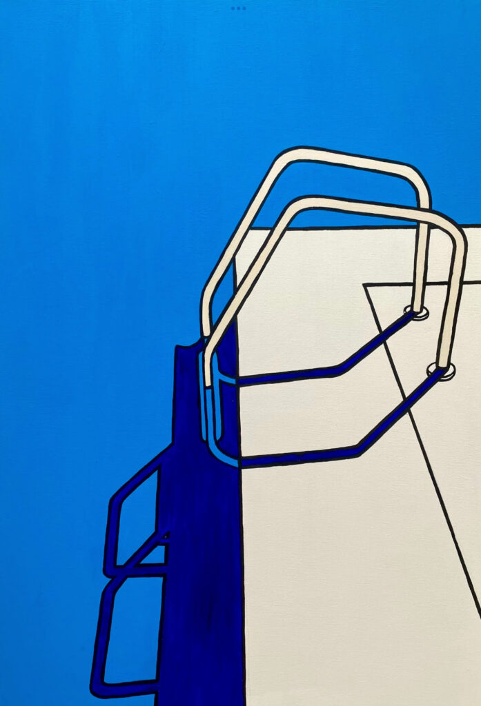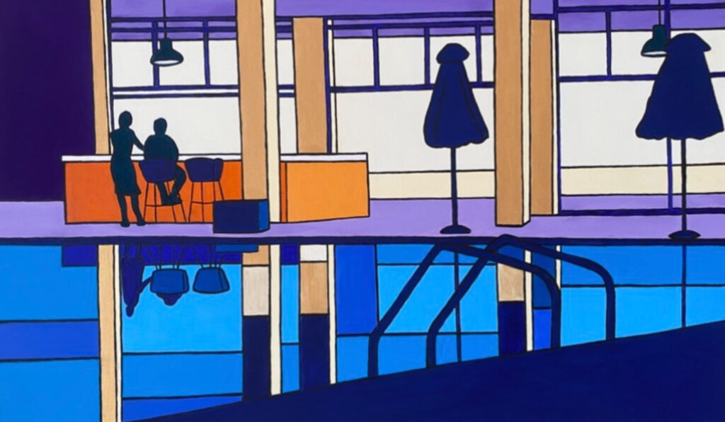 The other theme is ‘Alone Not Lonely’. These artworks are nearly always of swimming pools, slightly cropped and abstract in style. My take on this is that women CAN happily go on holiday alone, have fun and grab new adventures without having to be part of a couple. Just sitting by a pool in the sunshine with a book/coffee/cocktail can bring such peace and joy. No interruptions.