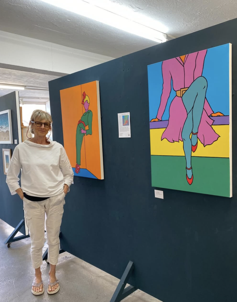My style evolved through my years in Cape Town, South Africa. The sunshine and warmth there inspired me to use bright and vibrant colours in what I then termed Line Art. I have only recently discovered this is actually Pop Art. In those years I only painted women, but always without any facial details, or by cropping the images, so no face at all. This was because I believed, and still do, that as women we are so often judged on the beauty (or not) of our faces and we are very much more than that. I always outline each piece with a solid black line to bring it all together, hence Line Art. I sold my work through a couple of galleries in Cape Town and much enjoyed the creative learning process during my years there.