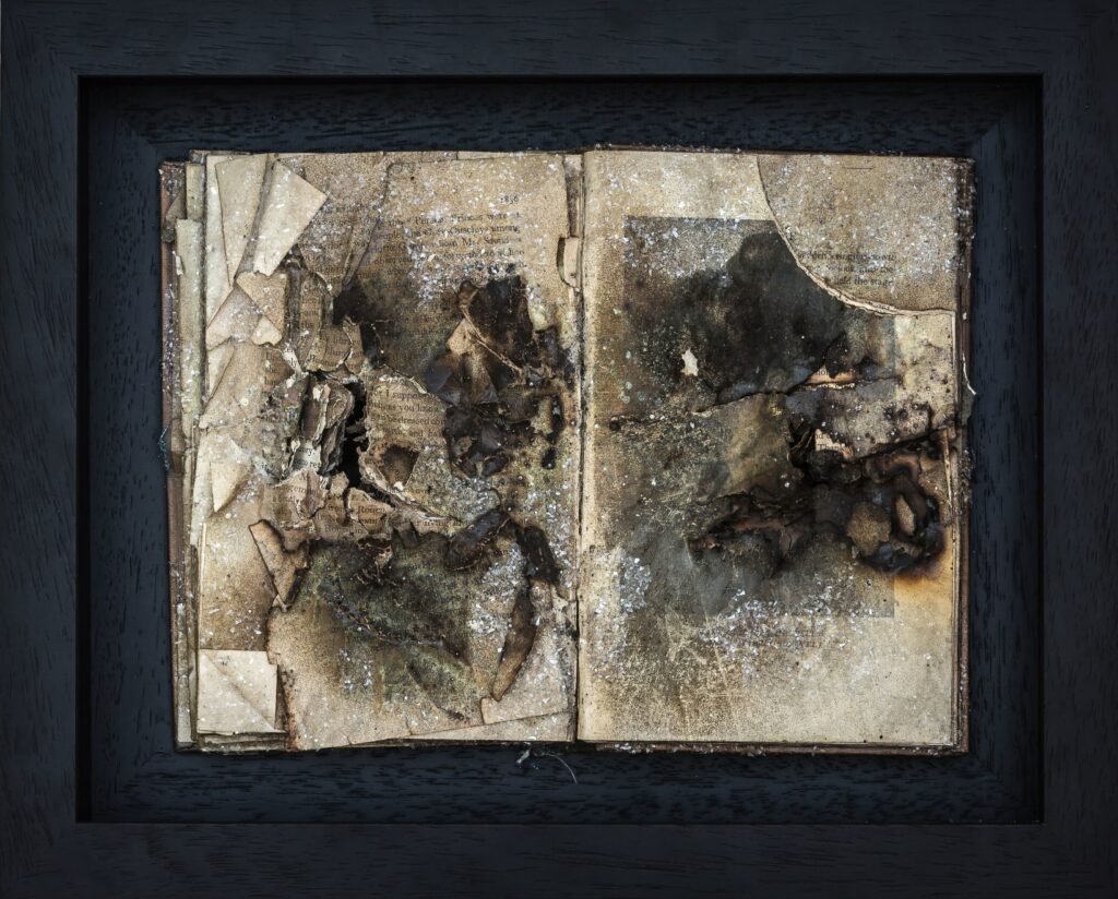 Notable works include Gianinna Delpino’s dream-like paintings of migration and origin; Yuliya V Krylova’s Butoh-inspired performance and painting investigating creativity as healing; Iona Scott’s plankton-inspired light sculptures revealing the barely visible; Thomas Robertson-Johnson’s Möbius hourglass structure meditating on time cycles; Aurelie Freoua’s mixed-media reflections on memory; Ananda Kuhn’s surreal interior-geological landscapes; and Lauren Baker’s installation Five Regrets – Five Truths, flooding a crypt chamber with existential and cosmic reflection.