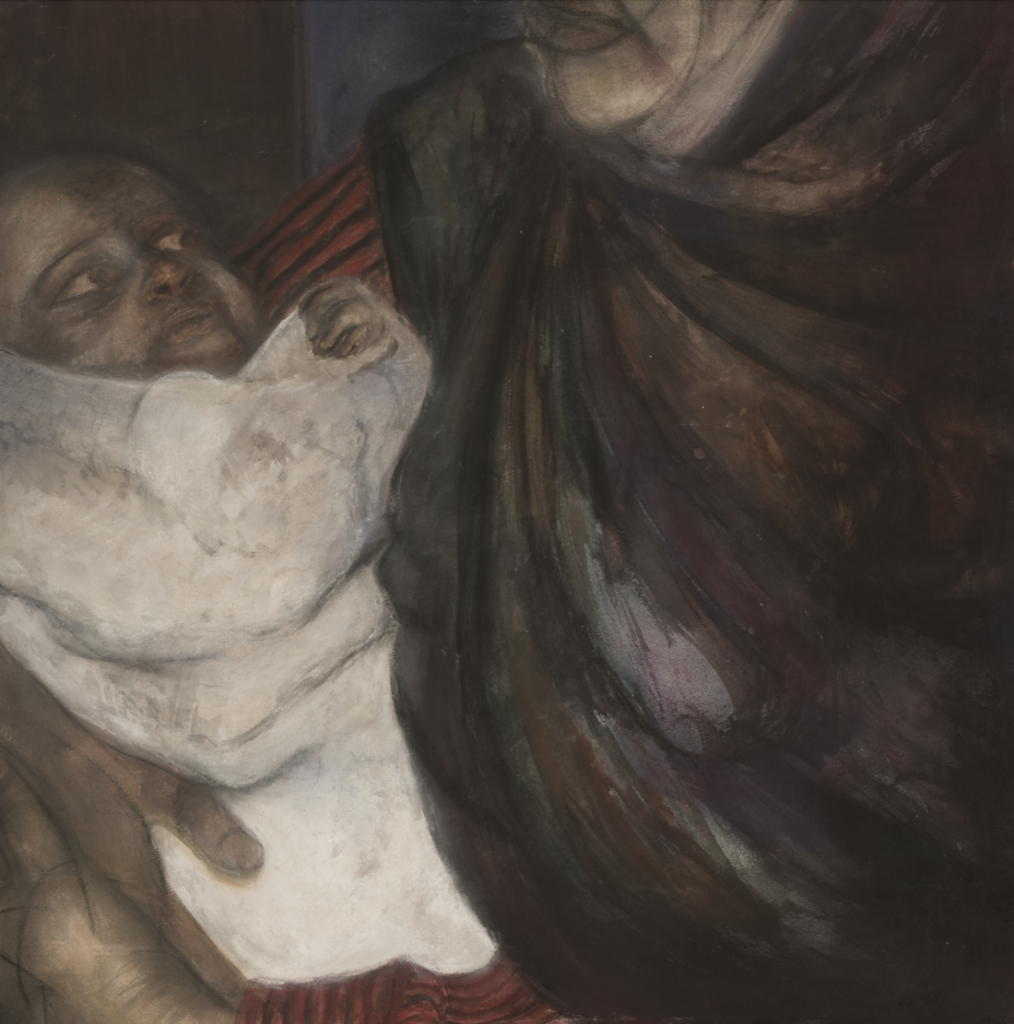 Newborn depicts Azam’s infant cousin wrapped in a white blanket and cradled in his mother’s arms. In a stylistic choice reminiscent of Victorian “Hidden Mother” photography, the mother’s face is omitted, focusing the viewer entirely on the baby’s face and the mother’s protective, nurturing gesture. In works such as The Contrast and Newborn, Azam explores family and dual cultural identities through expressive visual tension.