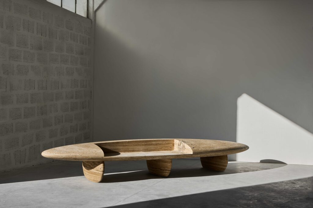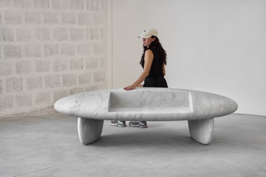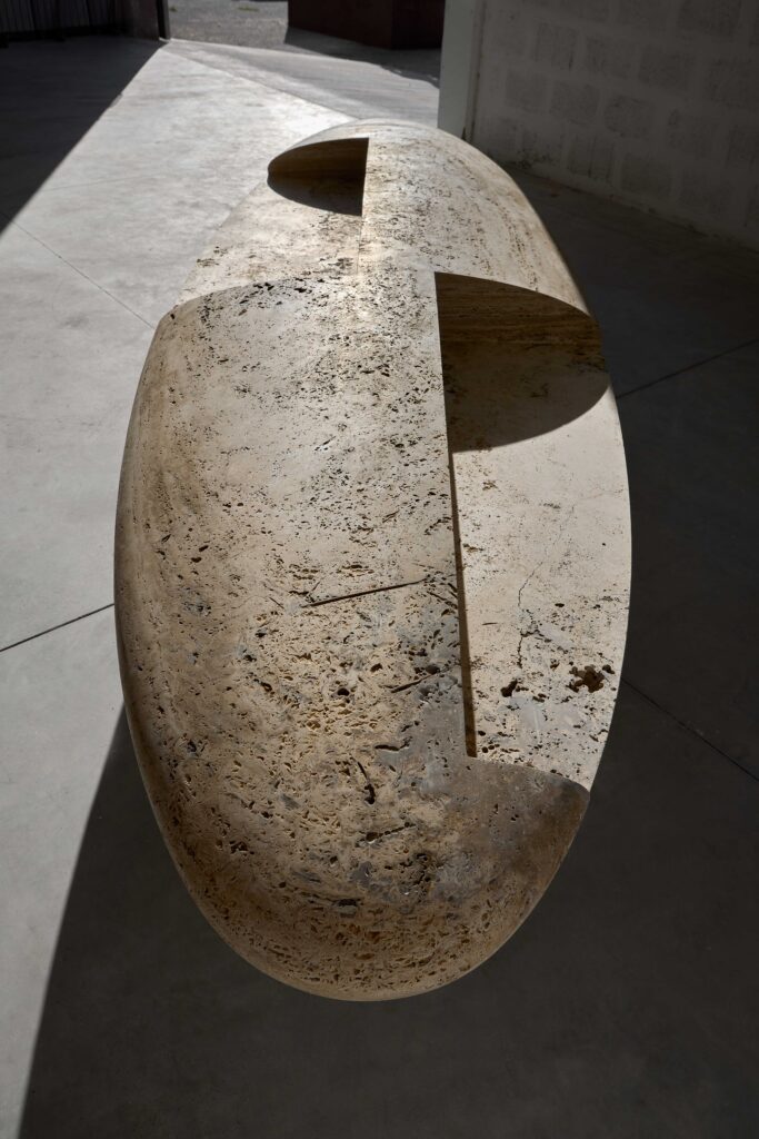 Congratulations on your major new public commission at 20 Gresham Street in the City of London. You’ve created enormous travertine stone benches, inspired by organic forms, Modernism, and design, which beautifully blur the line between art and utility. Can you tell us about the concept behind the work, the process of creating them, and how you see them questioning the boundary between sculpture and furniture?