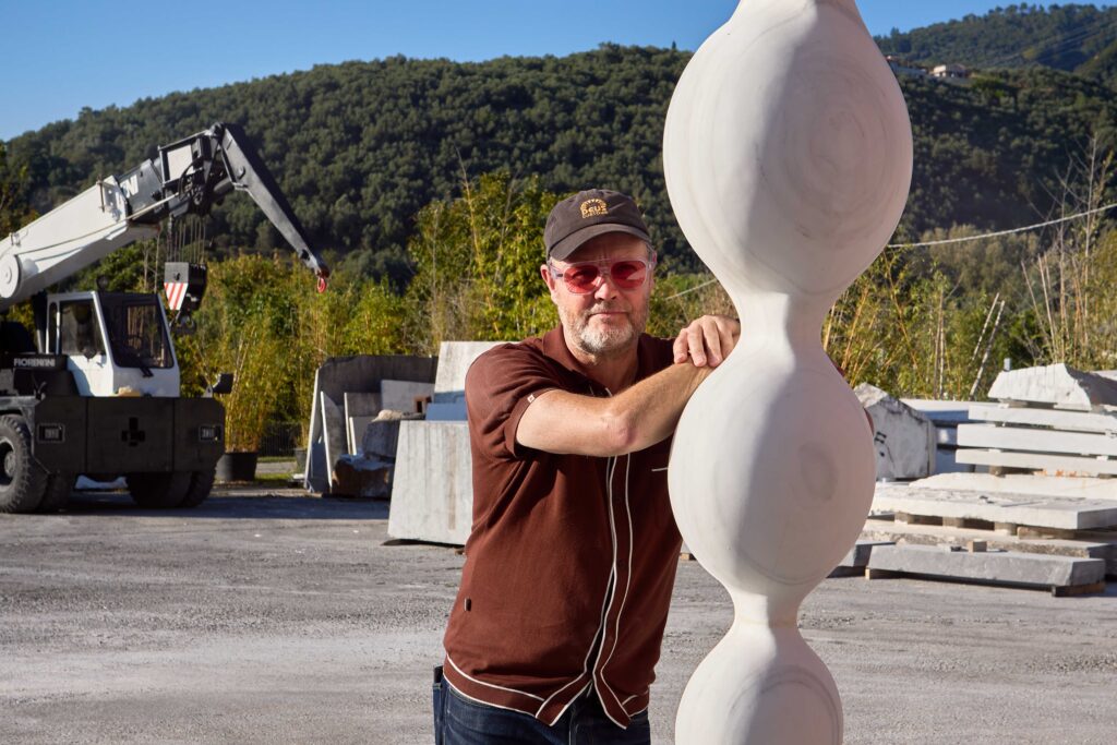 You’ve created several large-scale public commissions, including your Covent Garden installation of one large “boulder” and five smaller “pebbles” in red travertine. How do you approach interpreting and responding to different public spaces, and what roles do you think sculpture can play in shaping how people move through and experience those environments?