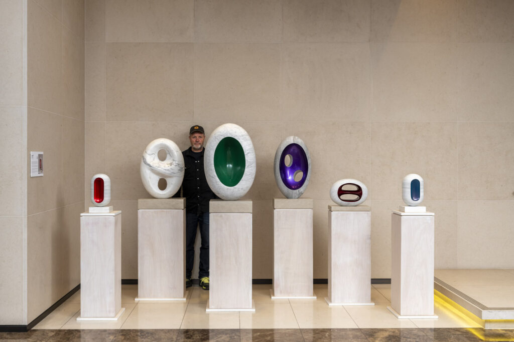 Known for his exploration of form, texture, and material, Worthington’s work bridges Modernist design, organic inspiration, and functional art. From his Covent Garden public installation to his new marble and painted sculptures in Mayfair, Worthington reflects on how art, design, and the natural world converge in his practice. He shares insights into how public sculpture can transform space, how tactile interaction shapes meaning, and how influences from Barbara Hepworth, Jean Arp, and Henry Moore continue to inform his pursuit of “significant form.”