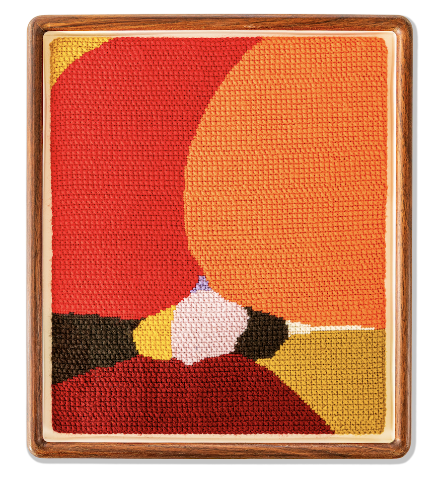 You’ve worked across paint, collage and needlepoint, each with its own pace, rhythm and physicality. How does shifting between these mediums influence the emotional tone of your work, and what draws you to a particular material at a given moment?