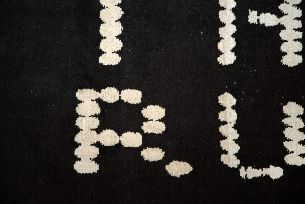 There’s something beautifully contradictory about turning a conceptual idea, often fleeting, digital, intangible, into something so physical, heavy, and labour-intensive. A rug demands time, touch, and craft. It slows the idea down. I like that tension: an instruction, a warning, a joke, painstakingly hand-woven by artisans.