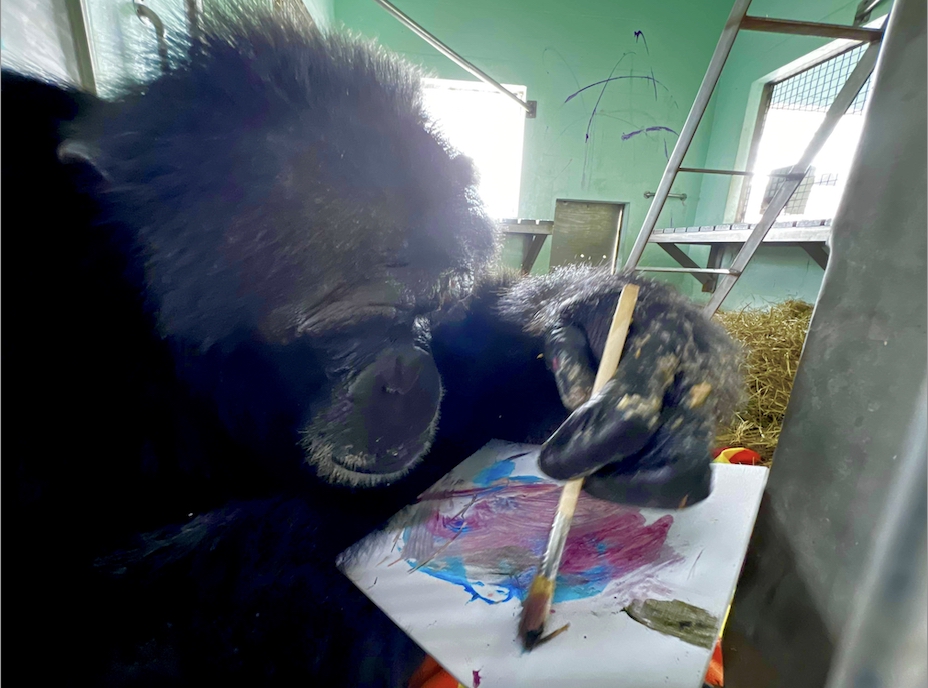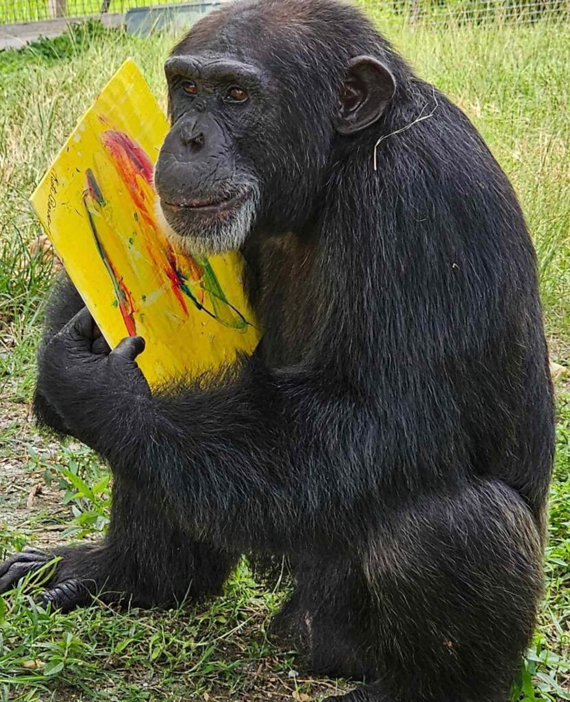 Only about 10% of our chimpanzees enjoy painting, Ozzy was a man of the people, so we priced the prints and merch so his fans could participate in this fundraiser, which we decided to launch on his birthday during Miami Art Week. Painting is just one of the many enrichment activities we provide—others prefer food puzzles, foraging, or picture books.” Dan Mathews, Save The Chimps