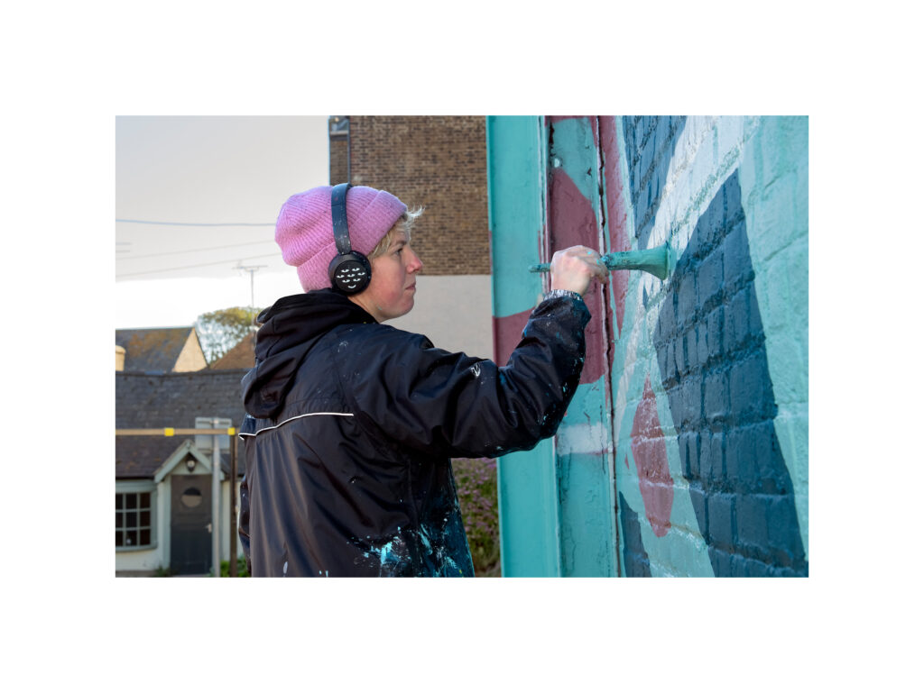 Public art has the power to spark dialogue in everyday spaces. What conversations do you hope these murals will inspire, within the Thanet community and beyond, about women’s voices, environmental stewardship, and the role of creativity in collective action? What role did Creative Debuts play in the project, and where did the title ‘She Rises with Sea’ come from?