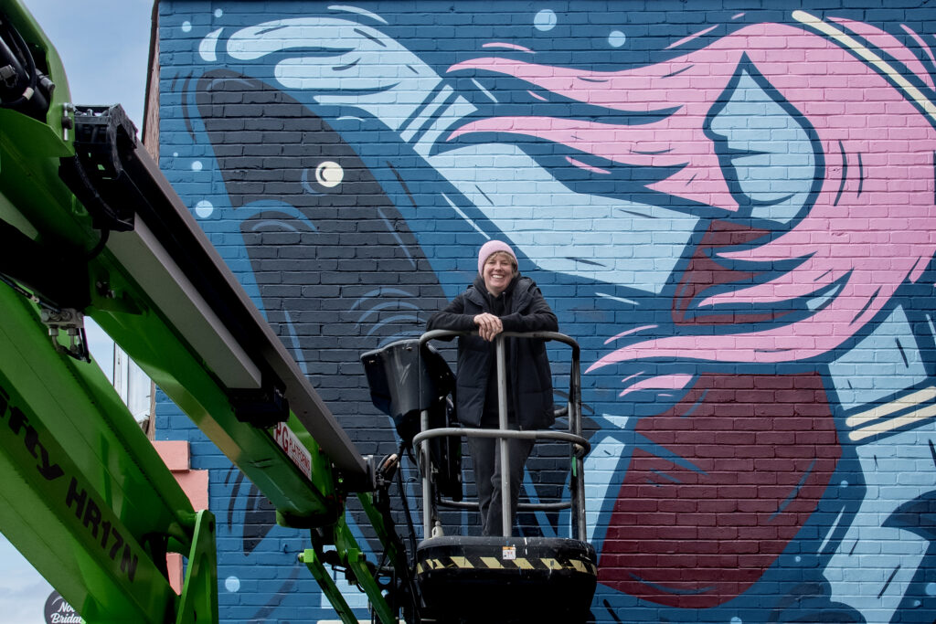 From the perspective of RUR we set a fixed brief that carry’s from one year over to the next. we live by the ocean and we are also a community beach clean CIC so this brief is always about the ocean and the stories the ocean wants us to hear. For the most part the ocean is suffering a multitude of environmental tragedies so a lot of artists naturally gravitate towards these subject matters. There is also something to be said about how I curate the artists who are already having open discussions about environmental and humanitarian issues, so part of the success in the end results is the artists that we invite. We were approached by POW to create a mural as celebration of their tenth year empowering women in the arts. So essentially the ingredients were all present from the outset so when KMG accepted the invitation it was over to her own interpretation of what that environmental story would be and how it portrayed the power of women. She nailed it.