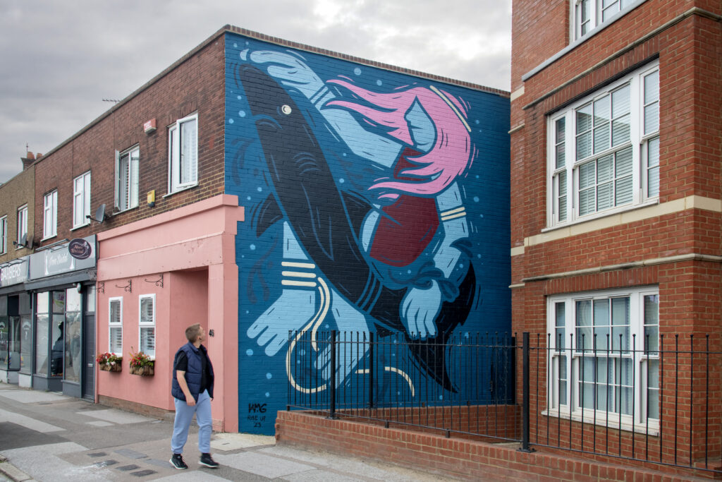 This autumn, the streets of British coastal town Thanet have become living canvases for a powerful new wave of public art. She Rises With the Sea–a collaboration between Power of Women Thanet (POW) and Louis Michel of Rise Up Residency (RUR)–unites environmental urgency with feminist storytelling through a trio of vibrant new murals across Margate, Broadstairs, and Westbrook. Conceived as a tribute to the women and girls leading the charge in ocean conservation, the series not only celebrates community, resilience, and creativity but also confronts the escalating crisis facing our seas.