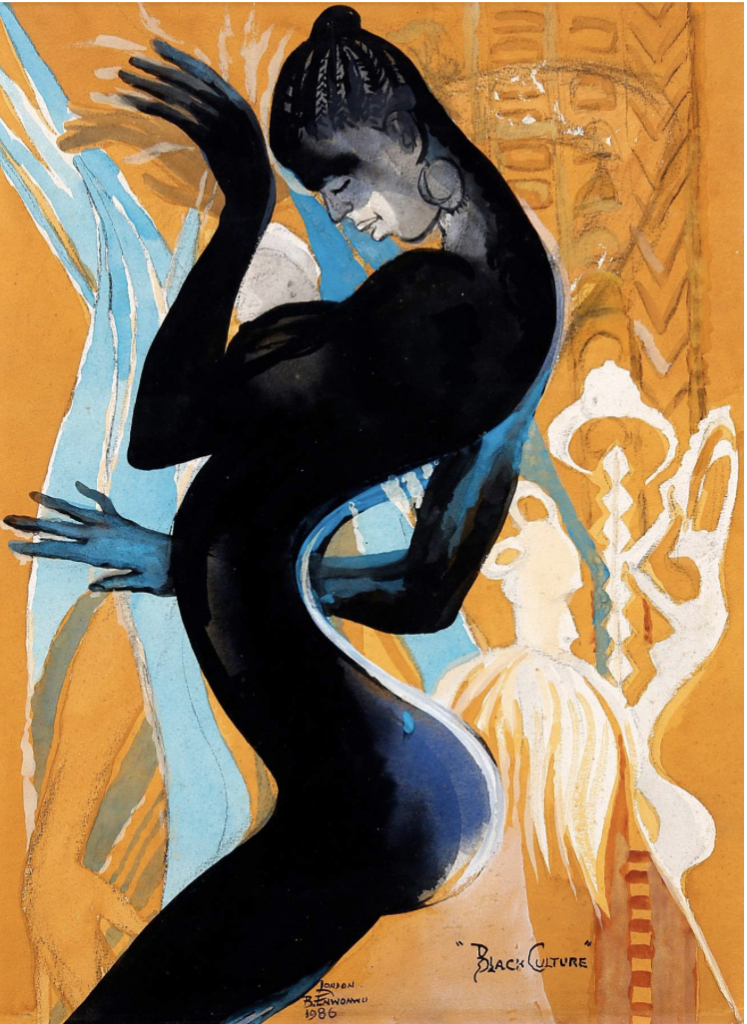Benedict Enwonwu ‘Black Culture 1986’. Lent by Kavita Chellaram 2025 © The Ben Enwonwu Foundation