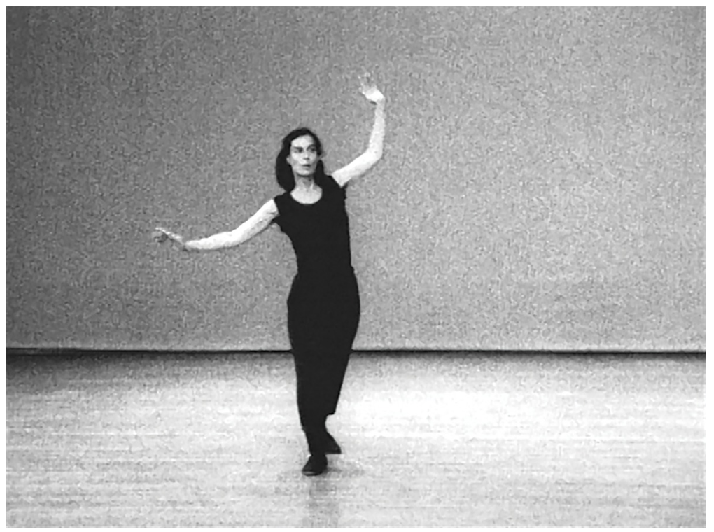 Trio A, Rainer’s signature dance work, was originally conceived in 1965 and first performed at the Judson Memorial Church in 1966. The piece was a culmination of several years of experimenting with what Rainer called ‘ordinary dance’ and ‘neutral doing’, a combination of ‘found’ or everyday movements that unfold without repetition or breaks. The work, like its title, is not intended to have a narrative, but rather to depict movement itself, with the dancer deliberately refusing to make eye contact with the audience. Lasting approximately four and a half minutes depending on the performer, the piece consists of a varied sequence of movements, which appear to be in continuous motion. Over the years, Rainer has reinvented the piece according to different contexts and with different numbers of dancers; from dancing it solo in tap shoes to staging it in 1970 with nude dancers draped in American flags, protesting the Vietnam War.