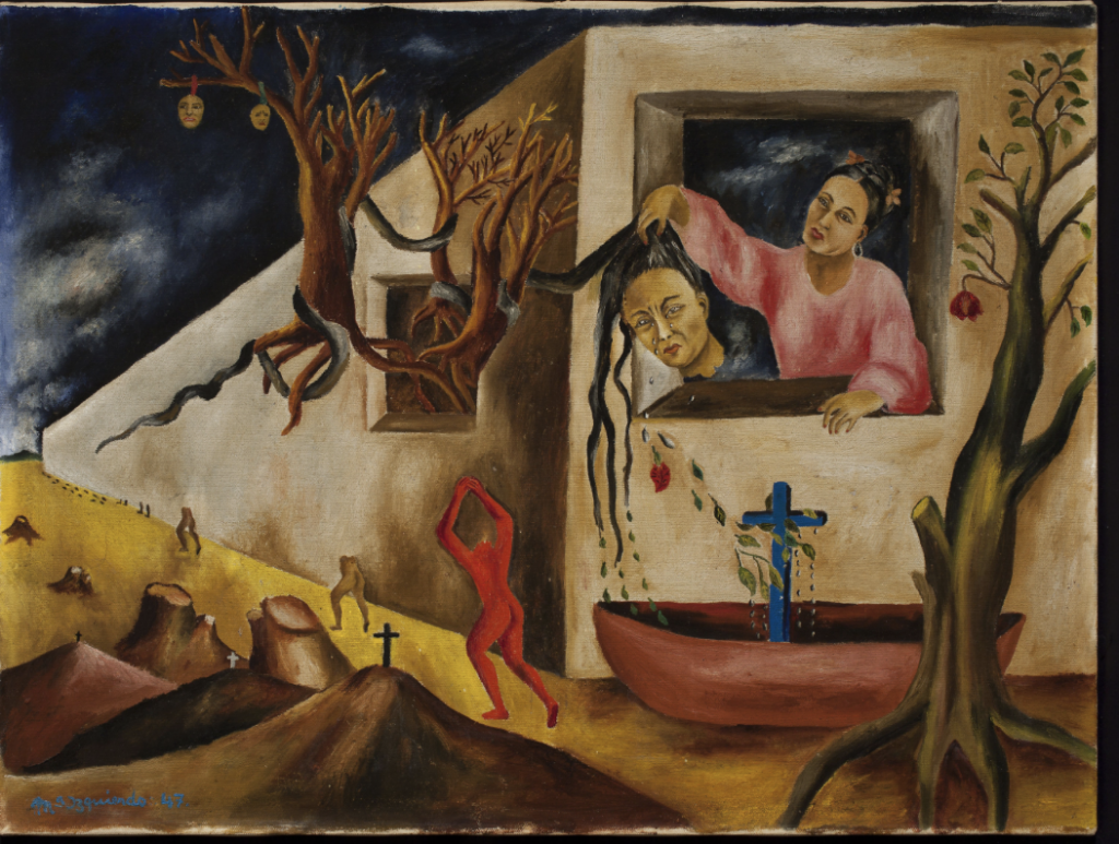 Although Frida Kahlo’s name first appeared in US artistic circles in the early 1930s, her work and image only gained widespread recognition decades later. During the late 1960s, the US Chicana/o movement embraced Kahlo as a powerful emblem of cultural pride and political resistance, celebrating her resilience and creativity. Born from the civil rights era of Mexican heritage, these artists aimed to establish a unique identity in America. The exhibition will explore how Kahlo’s works such as My Dress Hangs There 1933-8, which captures her ambivalence toward the United States, resonated deeply with Mexican migrants and Chicana/o communities, making her a lasting source of inspiration. The exhibition will also foreground the work of a new generation of artists working in Mexico in the late 1980s and 1990s. Moved by Kahlo, artists such as Nahúm B. Zenil and Georgina Quintana repurposed quintessentially Mexican imagery and popular traditions to question nationalist ideals, patriarchal structures and gender norms.