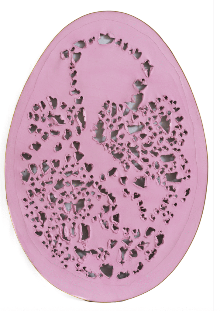 The gallery’s new Milan space, in the historic Palazzo Belgioioso, designed by Giuseppe Piermarini in 1772, becomes the site for an ‘intellectual confrontation’ between the two artists’ works, which unfolds across ideas of space, language, objecthood and the body, and, fundamentally, a search for origination, both of artistic form and of the universe.
