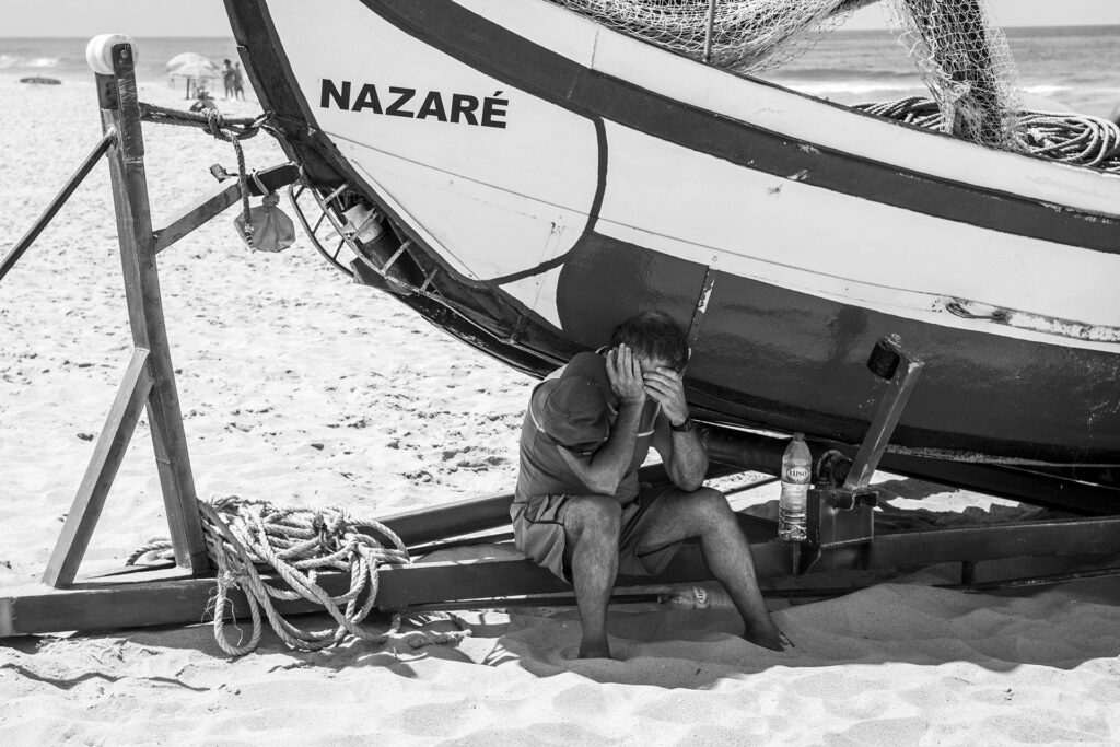 At the heart of Cunha de Sá’s documentary practice lies an acute awareness of disappearing traditions. His photographs of fishermen along the Portuguese coast are neither nostalgic Romanticisms nor overt political polemics. Instead, they function as testimonies. Portugal’s national identity is historically bound to the sea, celebrated in its anthem and mythology, yet Cunha de Sá’s images expose the fragility beneath this heroic narrative. The fishermen he photographs inhabit a precarious present shaped by industrial trawling, environmental degradation, and economic marginalisation. Rendered in black and white, their faces and gestures are stripped of distraction, foregrounding labour-worn bodies and a quiet dignity forged through endurance. The choice of monochrome is not merely aesthetic; it situates the images within a continuum of social documentary photography, aligning Cunha de Sá with figures such as Sebastião Salgado and Eve Arnold, while heightening emotional gravity and temporal ambiguity. These photographs feel both contemporary and archival, providing visual records of a way of life on the brink of erasure.